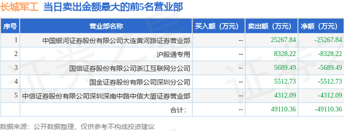 10月15日长城军工(601606)龙虎榜数据:游资陈小群上榜