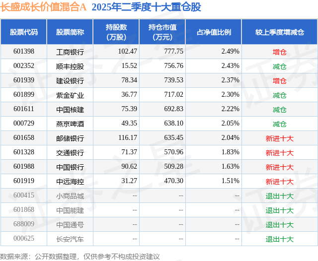 根据2025基金半年报公募基金重仓股数据,重仓该股的公募基金共3家,其中持有数量最多的公募基金为长盛基金的长盛成长价值混合A。长盛成长价值混合A目前规模为3.1亿元,最新净值1.8211(10月15日),较上一交易日上涨0.72%,近一年上涨7.02%。该公募基金现任基金经理为王宁。王宁在任的基金产品包括:长盛量化红利混合A,管理时间为2021年8月26日至今,期间收益率为15.05%。