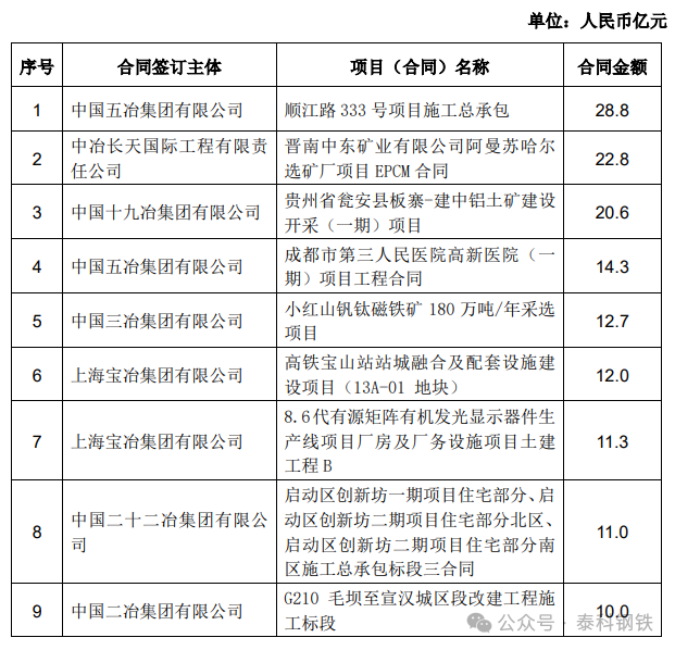 多个超10亿钢铁项目!中国中冶新签合同7606.7亿!