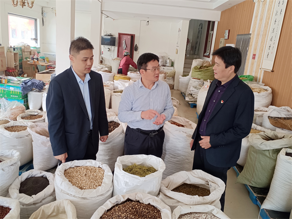 菏泽市鄄城县中药材管委会、中国人寿财险菏泽市中心支公司的工作人员赴舜王城中药材专业市场就产供销和风险保障需求进行实地调研。