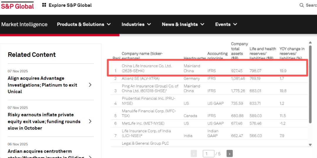 近日,标普全球市场财智发布2025年全球TOP 50寿险公司名单,共有8家中国险企上榜。