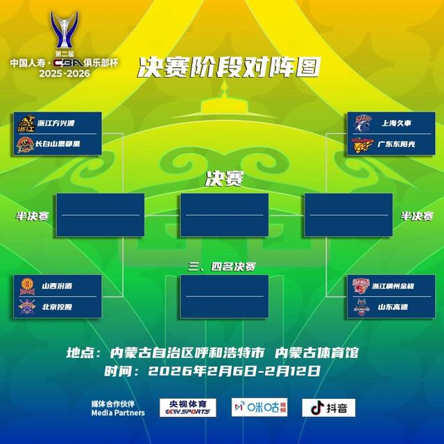 1月7日,第二届中国人寿·CBA俱乐部杯决赛阶段竞赛日程出炉。