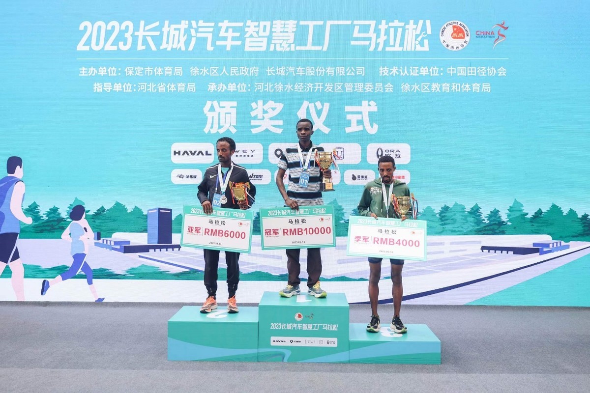 上午10时,国际选手JEREMIAN JENGANJERI率先冲破终点线,以2小时25分42秒优异的成绩取得男子马拉松冠军,女子组冠军被BELAYMNEH MEZGEBU以2小时48分27秒的成绩摘得。在马拉松赛道上,每一位全力奔跑的人都值得敬佩,抵达终点本身就是一场胜利和骄傲。现场,长城汽车特别为每一位完赛选手颁发了荣誉奖牌,向坚定前行、永不言败的马拉松跑者致敬!