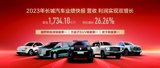 2023年长城汽车销售超123万辆,总营收1,734亿元