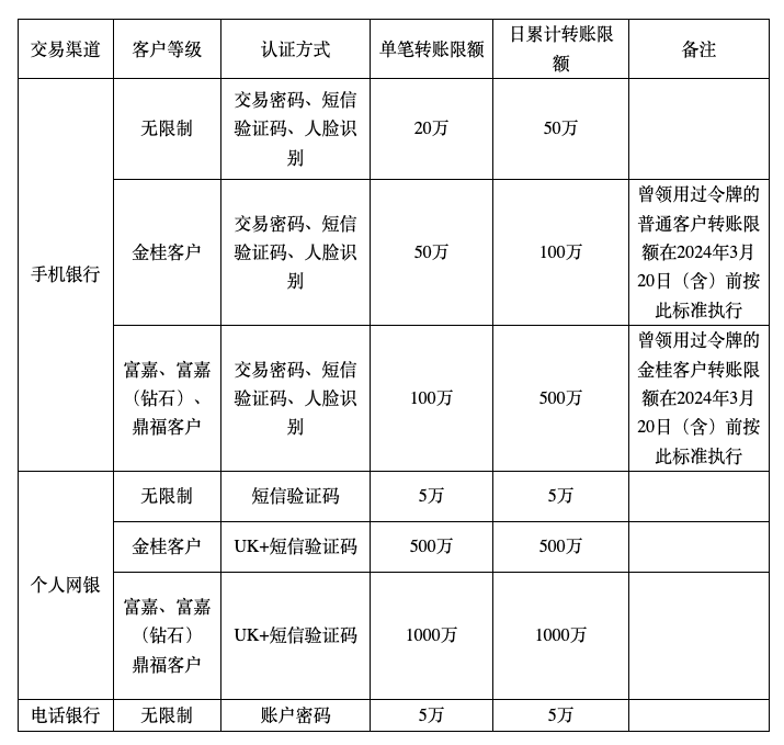 10月17日,中国邮政储蓄银行在官网发布个人电子银行渠道转账限额标准:
