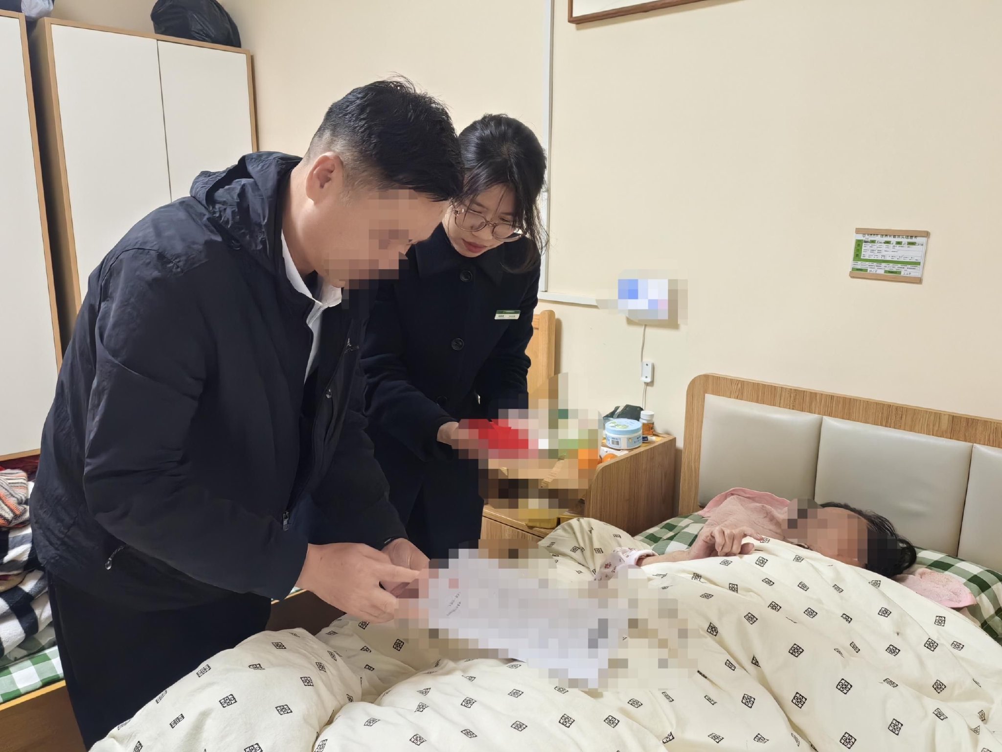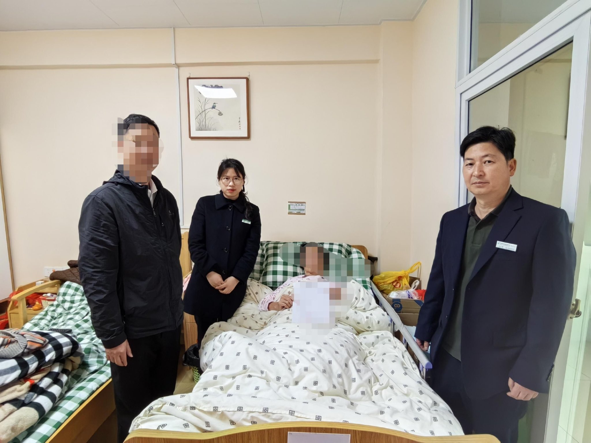 支行“邮爱驿站”服务小分队携带业务材料,专程驱车前往连城县社会福利中心。见到卧床的杨女士,工作人员俯身放慢语速,以温和语气耐心沟通,细致确认身份信息及业务意愿,全程动作轻柔、服务周到,用细节传递对老人的尊重与关爱。