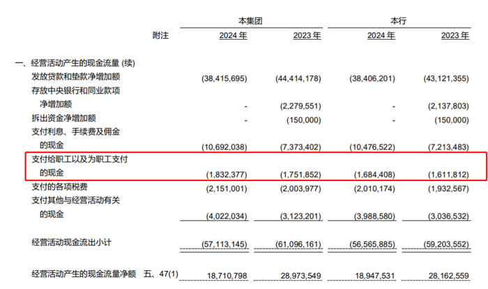 2024年,齐鲁银行业务及管理费34.13亿元,同比增长8.5%。其中职工薪酬费用为19.38亿元,较2023年增长1.55亿元,涨幅9%。