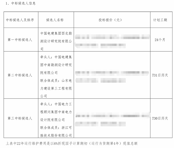 另:本次报价包含25年运维(运行检修维护)费用,其中前3年运行维护费用包含在EPC固定总价内,剩余22年需一次性逐年报价,在EPC总承包(前三年运行维护)结束后,第4年开始的运维费用由招标人在年度运维费用预算中逐年列支。