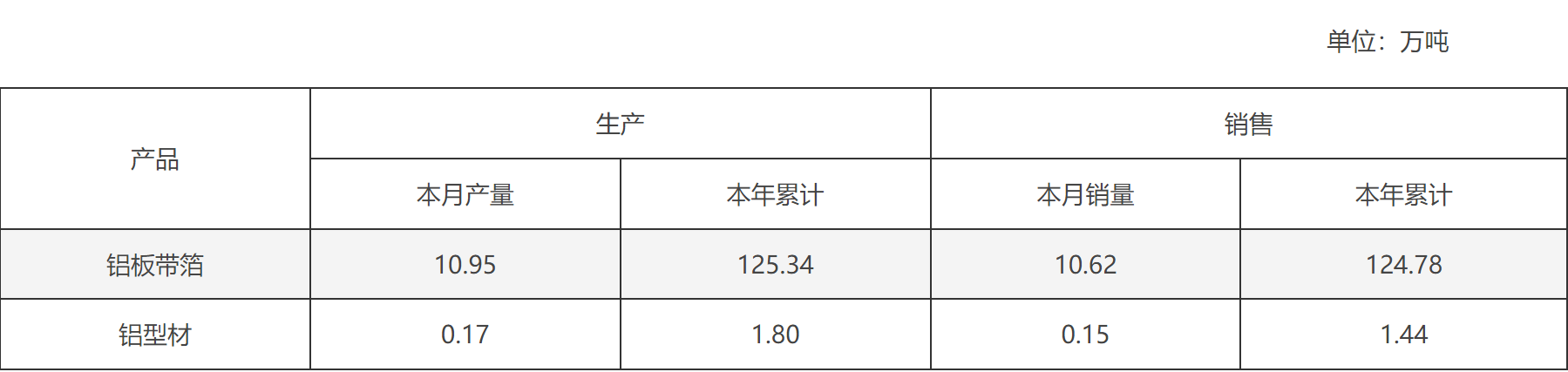 1月3日公告,公司2023年铝板带箔销量合计124.78万吨,铝型材1.44万吨。