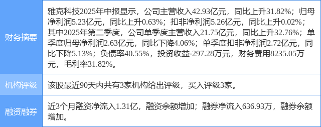 2025年9月12日,中银证券研究员余嫄嫄,范琦岩发布了对雅克科技的研报《江苏先科逐渐放量,成都硅微粉产线投产》,该研报对雅克科技给出“买入”评级。研报中预计2025-2027年归母净利润分别为11.83/15.36/19.40亿元,每股收益分别为2.49/3.23/4.08元,对应PE分别为23.6/18.2/14.4倍。看好公司电子材料业务持续开拓,维持买入评级。证券之星数据中心根据近三年发布的研报数据计算,该研报作者对此股的盈利预测准确度为90.16%。
