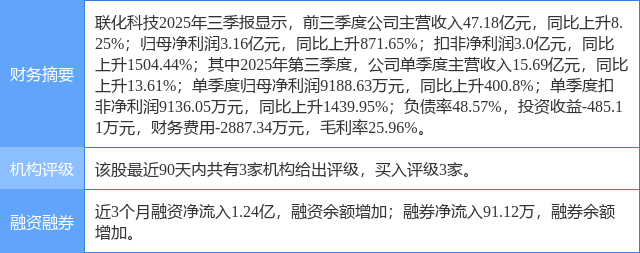 2025年10月13日,中银证券研究员余嫄嫄,范琦岩发布了对联化科技的研报《归母净利润同比大幅增长,植保业务毛利率提升》,该研报对联化科技给出“买入”评级。研报中预计2025-2027年归母净利润分别为3.18/4.21/5.30亿元,每股收益分别为0.35/0.46/0.58元,对应PE分别为32.6/24.6/19.6倍。看好公司所处植保行业景气度回暖,各业务产品布局有序推进,维持买入评级。证券之星数据中心根据近三年发布的研报数据计算,该研报作者对此股的盈利预测准确度为46.54%。