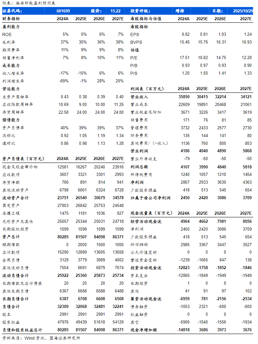 证券研究报告《潞安环能(601699)2025年三季报点评:2025Q3公司煤炭售价回暖,但盈利受量与成本拖累》