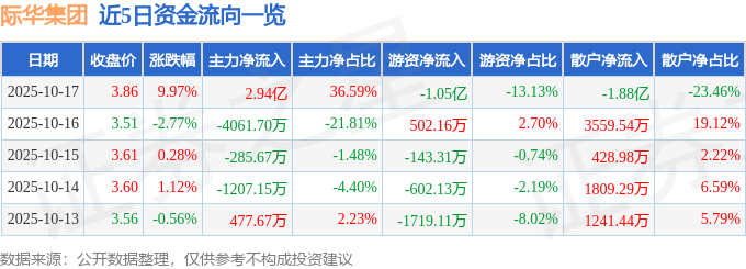 10月17日的资金流向数据方面,主力资金净流入2.94亿元,占总成交额36.59%,游资资金净流出1.05亿元,占总成交额13.13%,散户资金净流出1.88亿元,占总成交额23.46%。