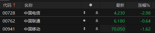 三大电信运营商港股齐跌 中国电信下跌近3%