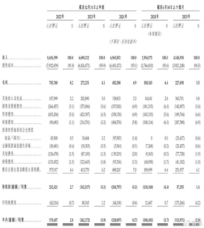 于2022年、2023年、2024年及截至2025年6月30日止六个月,吉利集团的合计采购金额分别为40.22亿元、33.87亿元、19.63亿元及10.49亿元,分别占千里科技同期采购总额的50.4%、50.1%、29.3%及29.7%。同期,来自吉利集团的收入分别为34.23亿元、22.49亿元、21.44亿元及13.78亿元,分别占千里科技收入的39.7%、33.6%、30.8%及33.2%。此外,千里科技亦预期将向吉利集团提供智能驾驶解决方案。