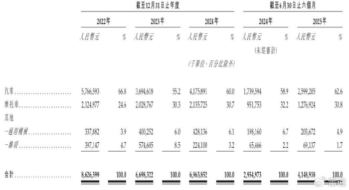 千里科技2025年上半年来自汽车领域的收入为26亿元,占营收的比例为62.6%;来自摩托车的收入为12.77亿元,占营收的比例为30.8%。