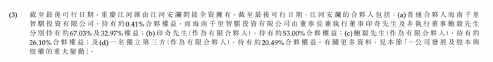 据查阅,江河汇由江河安澜间接全资拥有。江河安澜的合伙人包括:普通合伙人海南千里智骐投资有限公司,持有约0.41%合伙权益,而海南千里智骐投资有限公司由印奇及鲍毅分别持有约67.03%及32.97%权益;印奇(作为有限合伙人),持有约53.00%合伙权益;鲍毅(作为有限合伙人),持有约26.10%合伙权益;及一名独立第三方(作为有限合伙人),持有约20.49%合伙权益。