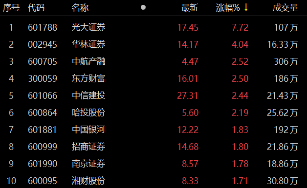 上证报中国证券网讯 5月15日,券商概念午后异动拉升,截至14:08,光大证券涨近8%,华林证券、东方财富、中信建投、湘财股份等跟涨。