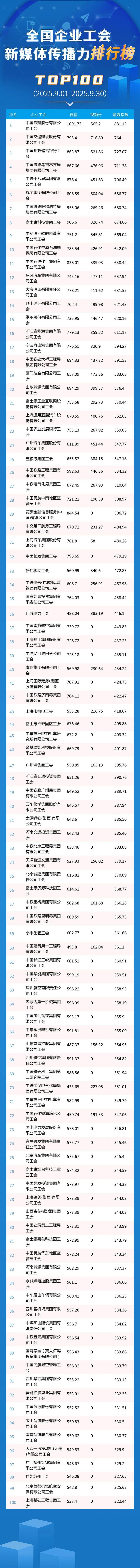 聚焦“正能量、高质量、大流量”,根据9月各企业账号的实际运营情况,我们从微信公众号月度排名前20的企业工会,每家遴选1篇优秀推文;从微信视频号月度排名前10的企业工会,每家遴选1个优秀短视频,进行集中展示展播。