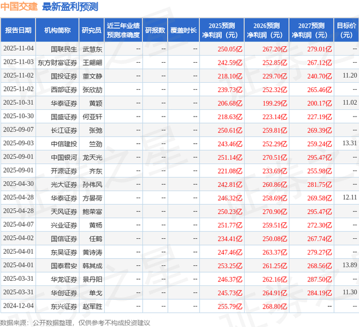 证券之星消息,2025年11月4日中国交建(601800)发布公告称公司于2025年10月31日召开业绩说明会,广发证券、华泰证券、瑞银证券参与。