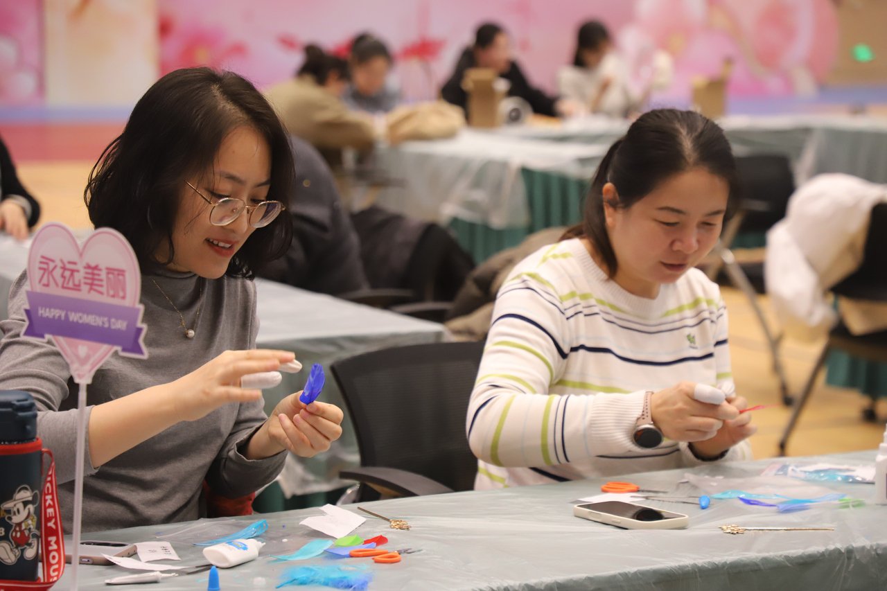 为纪念第116个“三八”国际劳动妇女节,丰富片区女职工节日文化生活,弘扬中华优秀传统文化,持续推进天津片区“家园”文化建设,3月6日,中海油服天津分公司工会组织开展“巾帼绽芳华 蓝海启新篇”妇女节非遗手工DIY活动,让广大女职工在指尖造物中感受传统技艺魅力,提升艺术修养与审美情趣。