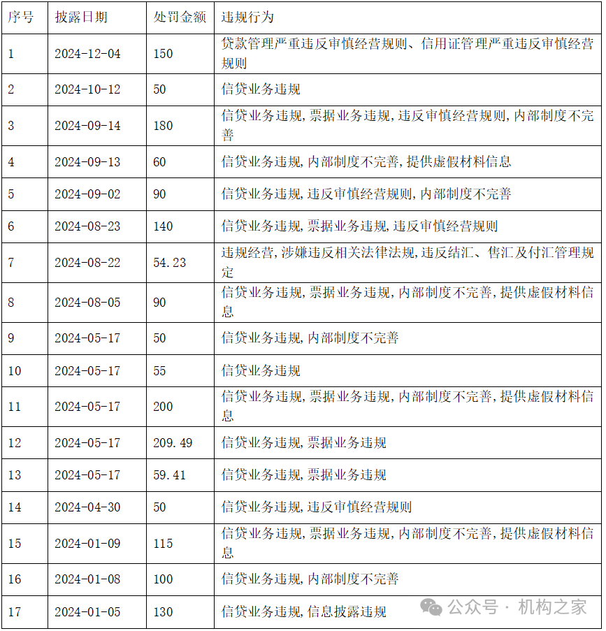 如本次150万元处罚所涉及的问题,主要就是贷款信贷管理以及信用证管理;9月14日披露的180万元处罚也是信贷业务违规、票据业务违规;8月23日的140万元处罚、5月17日的200万元和209.49万元处罚、1月9日的115万元处罚,均同时涉及这两个问题。