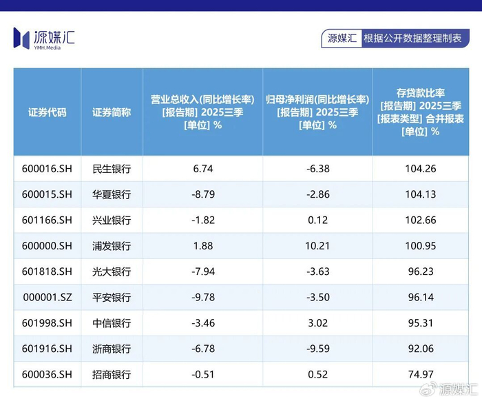 不过,光大银行的存贷比在2025年三季度末降至96.23%,在9家A股上市股份行里位列中游。