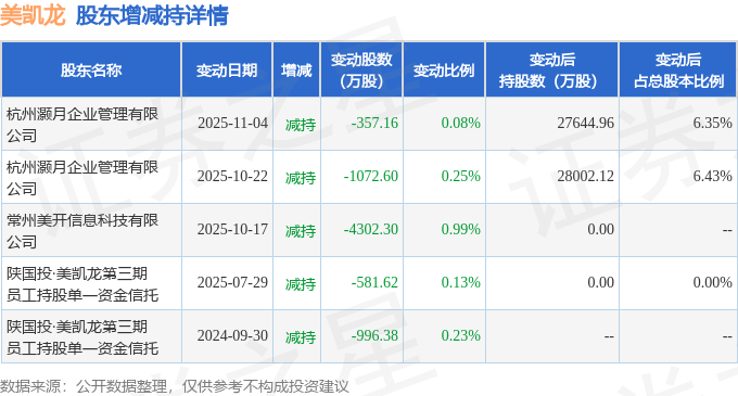 该股近半年内有股东持股变动,合计净减持7310.06万股,股东增减持明细如下表: