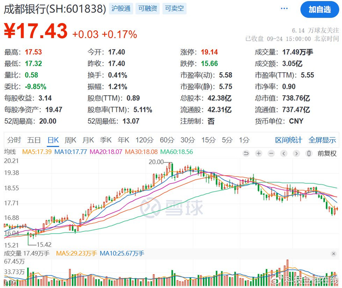 今年以来,成都银行表现亮眼,最高股价涨幅将近23%,被很多热衷价值投资的股民追捧。