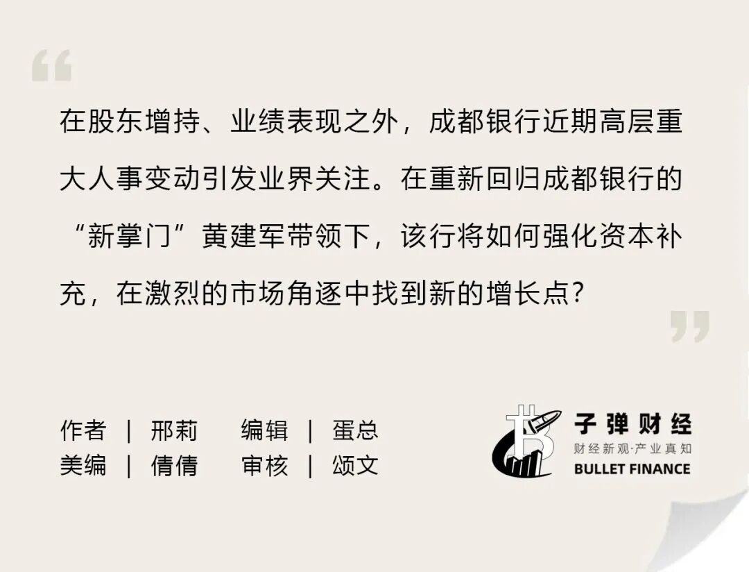 未来,成都银行在新掌门的黄建军带领下,将如何强化资本补充,在激烈的市场角逐中找到新的增长点?对此,「子弹财经」将持续关注。