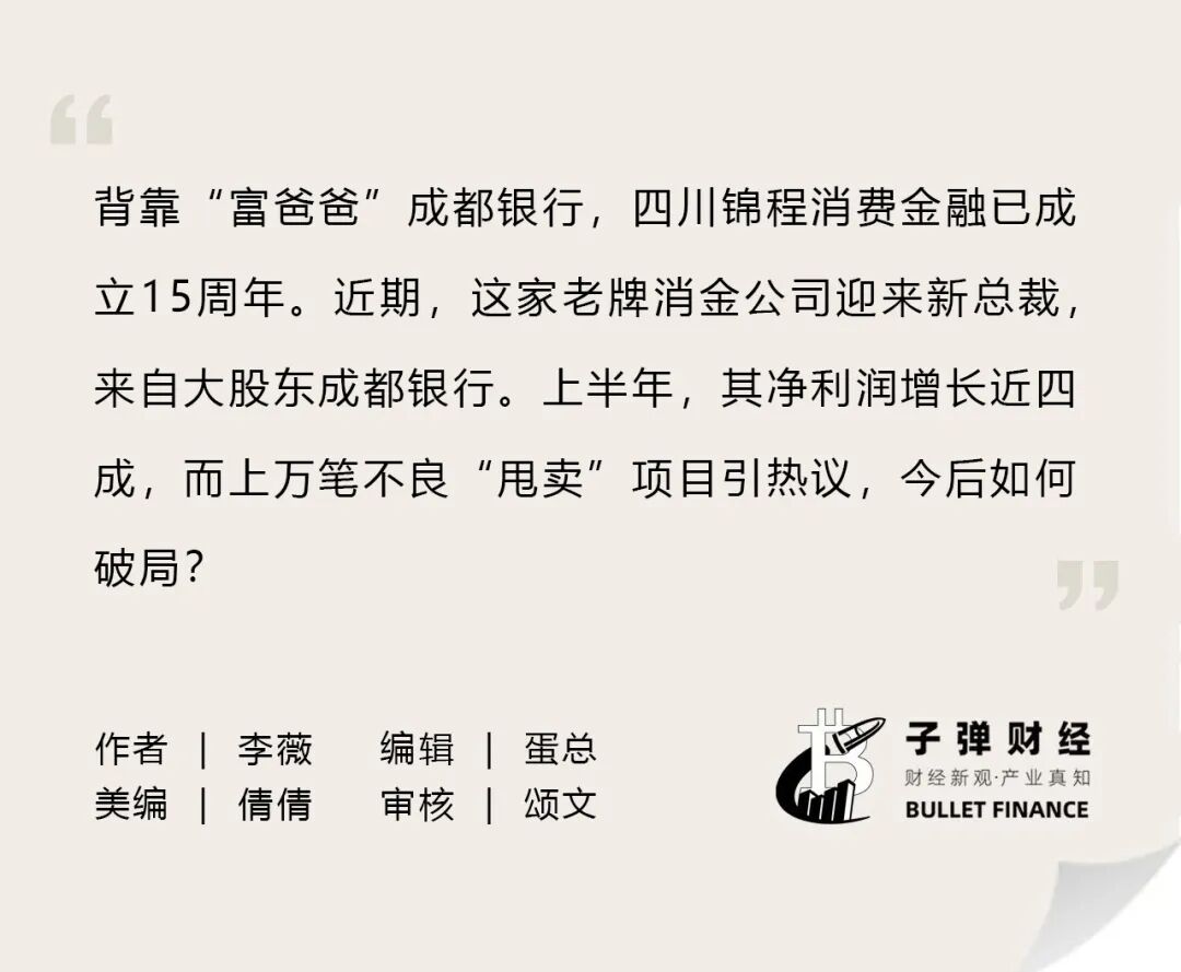 背靠成都银行,锦程消费金融净利增幅近四成,不良“甩卖”卡在哪?