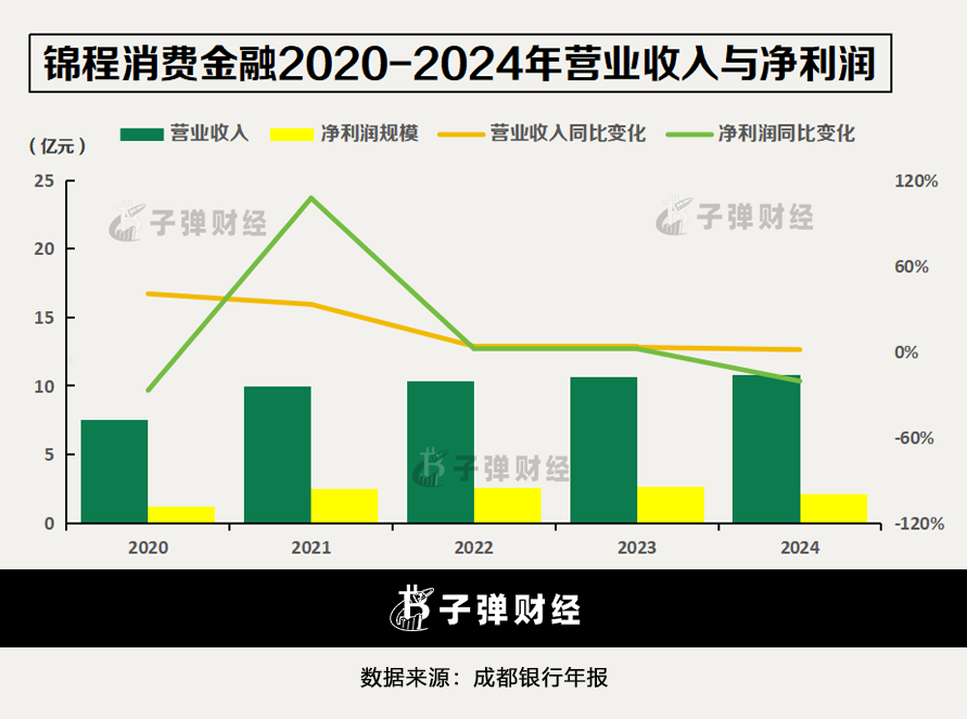具体从成都银行2025半年报来看,截至今年6月末,锦程消费金融的营业收入与净利润增速分别达到6.42%、37.5%。尤其是净利润同比增幅近四成,位于行业前列。