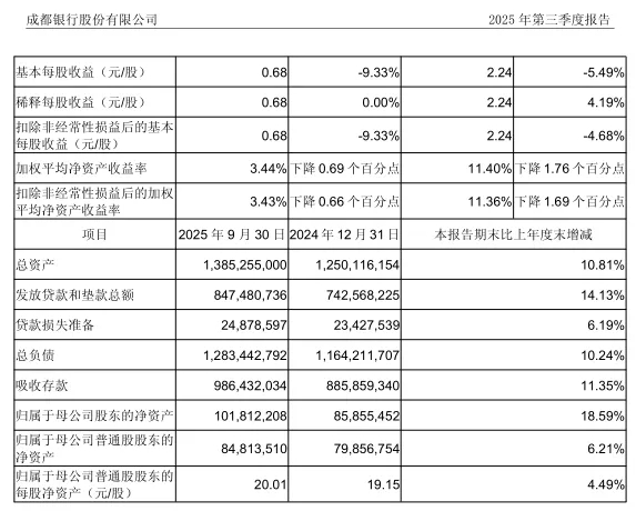 这种影响,能从成都银行2025年三季度财报中看出一丝端倪。
