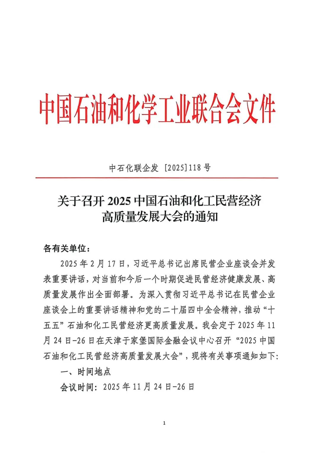 关于召开2025中国石油和化工民营经济高质量发展大会的通知