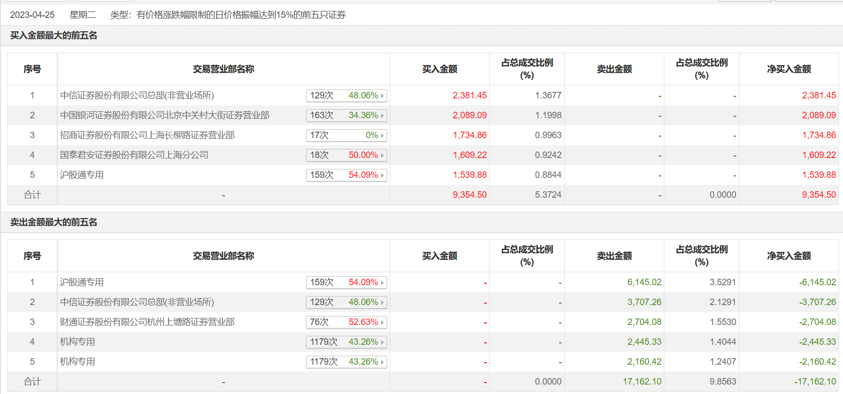 具体来看,机构合计净卖出4605.75万元。此外,中信证券总部(非营业场所)、中国银河证券北京中关村大街证券营业部分别买入2381.45万元、2089.09万元;沪股通专用、中信证券总部(非营业场所)分别卖出6145.02万元、3707.26万元。