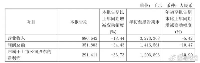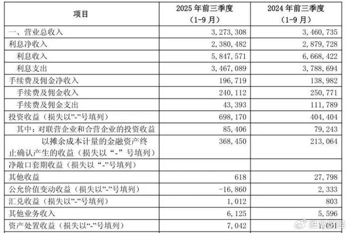 三季报显示,今年前三季度,紫金银行实现营业收入32.73亿元,同比减少5.42%;实现归母净利润12.04亿元,同比减少10.9%,其中,2025年第三季度,紫金银行实现营收8.81亿元,同比减少18.44%,实现归母净利润为2.91亿元,同比减少33.73%,业绩下滑幅度尤其惊人。