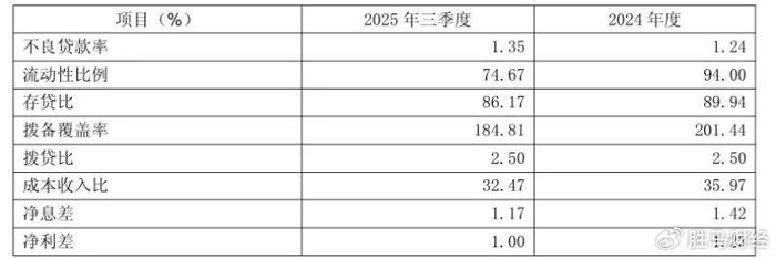 除了经营业绩的快速下滑之外,紫金银行的资产状况也不容乐观。截至2025年9月末,紫金银行不良贷款率升至1.35%,同比上升0.11个百分点;关注类贷款余额从26.67亿元增至30.94亿元,占比由上一年同期的1.41%升至1.61%。