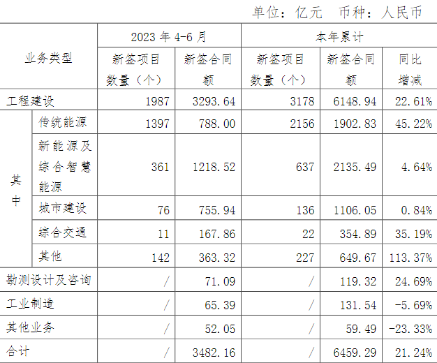 中国能建:上半年新签合同额累计6459.29亿元,同比涨21.24%