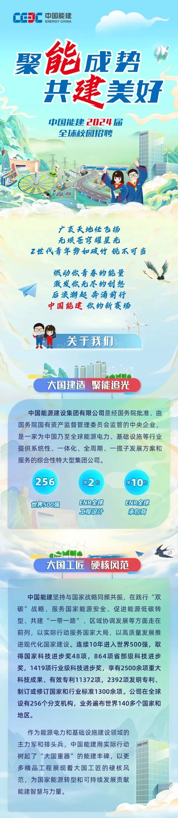 【校招】岗位1400+,人数7500+!中国能建2024届全球校园招聘等你来