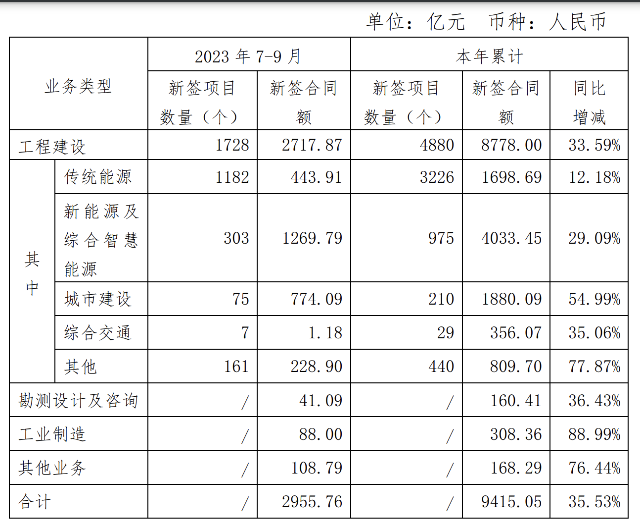 中国能建:前三季度累计新签合同额9415.05亿元,同比增长35.53%