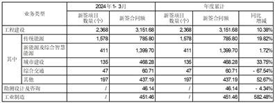 2.新能源及综合智慧能源业务包括风电、太阳能发电、生物质发电、综合智慧能源、各类储能、氢能、地热及其他新能源(根据公司业务分类调整,从2023年第三季度起将工程建设项目的抽水蓄能由传统能源调整到新能源及综合智慧能源中,并对累计及同比数据进行了追溯调整)。