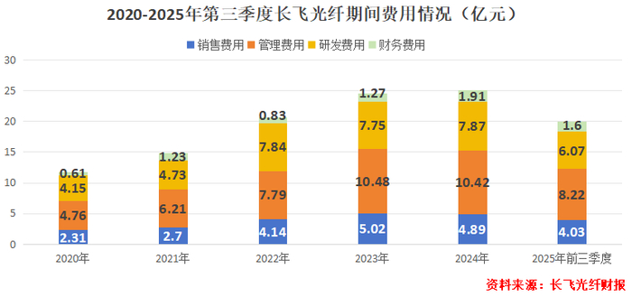 公司期间费用水平一直较高,2025年前三季度合计约20亿元,研发费用率一直约为6%。