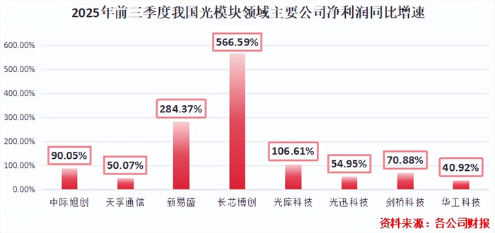 2022年7月,长飞光纤收购博创科技(现更名为长芯博创)。长芯博创专研光模块业务,在高手如云的光模块领域杀出重围:2025年前三季度,其净利润同比增速高达566.59%。