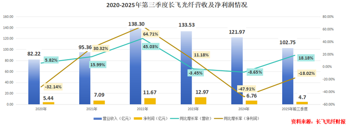 2025年前三季度,长飞光纤营收102.75亿元,同比增长18.18%;然而净利润则只有4.7亿元,同比下降18.02%。