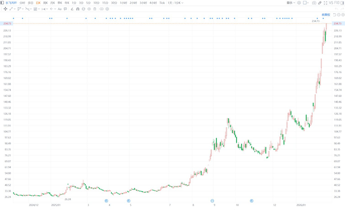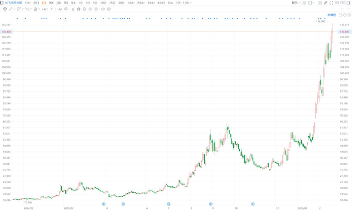 消息面上,在AI需求推动下,市场对光纤的需求高涨。根据CRU数据,2026年1月,国内G.652.D裸光纤现货价格环比上涨79%,同比上涨92%,自2025年5月以来累计涨幅超100%。华泰证券发表研报称,2026年1月,中国市场G.652.D单模光纤价格创下近七年新高,平均价格来到35元/芯公里。