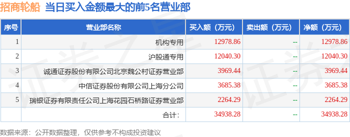 11月4日招商轮船(601872)龙虎榜数据:游资方新侠上榜