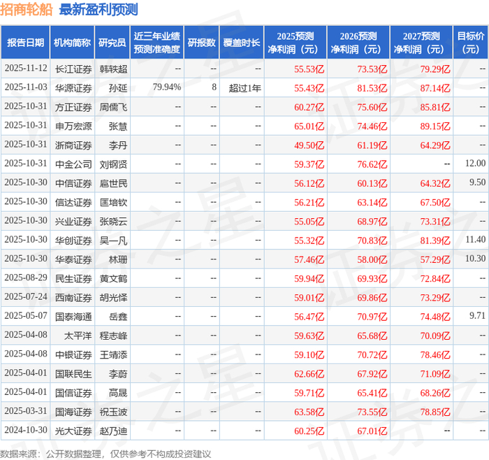 招商轮船2025年三季报显示,前三季度公司主营收入193.1亿元,同比上升0.07%;归母净利润33.0亿元,同比下降2.06%;扣非净利润29.01亿元,同比下降11.78%;其中2025年第三季度,公司单季度主营收入67.25亿元,同比上升10.95%;单季度归母净利润11.75亿元,同比上升34.75%;单季度扣非净利润9.95亿元,同比上升17.93%;负债率46.74%,投资收益5.75亿元,财务费用8.53亿元,毛利率23.37%。
