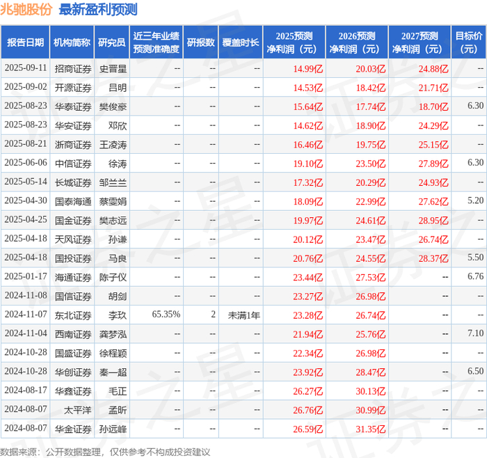 最新盈利预测明细如下: