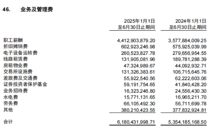 营收增长的同时,营业成本增加了。上半年,中国银河营业支出60.88亿元,较2024年上半年增加6.83亿元,增幅为12.64%。
