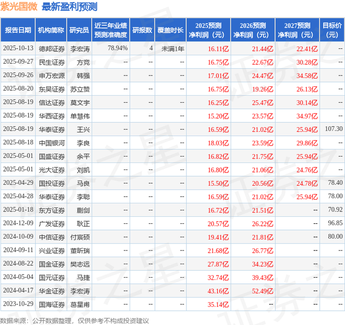 证券之星数据中心根据近三年发布的研报数据计算,德邦证券李宏涛研究员团队对该股研究较为深入,近三年预测准确度均值为78.94%,其预测2025年度归属净利润为盈利16.11亿,根据现价换算的预测PE为45.75。